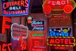 Bright lights, blinking neon, and signs from the past all in one glowing place.